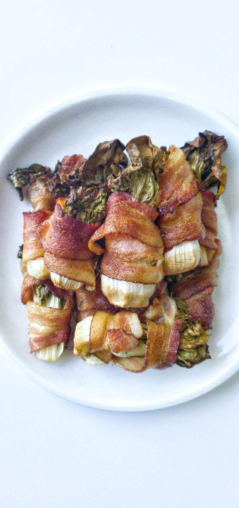 You can pretty much wrap anything in bacon and make foods even more palatable. I don’t think I’ve seen this particular combination before and thought I would give it a try. If you like bacon wrapped asparagus, for example, you might want to give this a try.